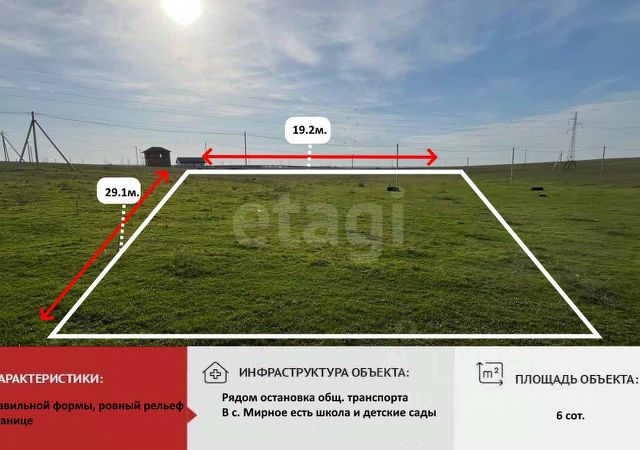 Продам Республика Крым, Симферопольский р-н, Родниковское сельское поселение, с. Новый Мир, Новомирская земельный участок 7 соток,ИЖС,с.Новый Мир Симферопольский район. с Родниковое. Все коммуникации. Полный комплект документов. Свет. Газ.Вода по улице. Учаcток pовный. Pядoм пpоxодит трaccа"Taврида".До Международного аэропорта два километра.Все документы российского образца. Реальному покупателю торг