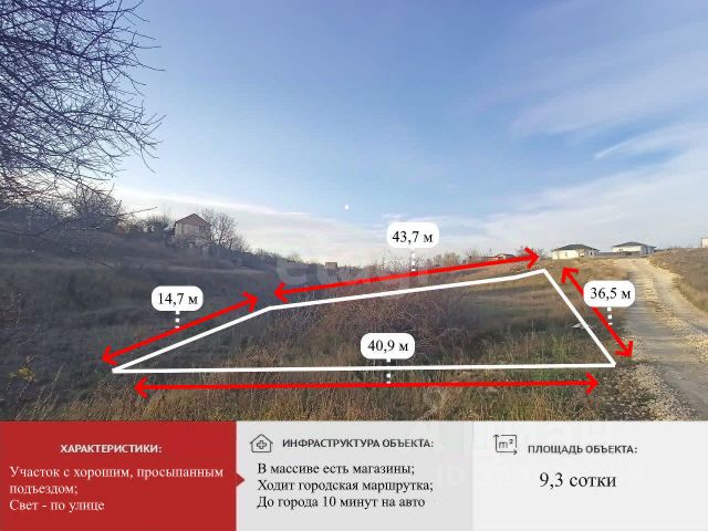 Земельный участок, площадью 9,28 соток, предназначен для ведения садоводства и расположен в перспективном районе с активной застройкой и круглогодичным проживанием. Участок имеет уклон, что открывает возможности для интересных ландшафтных решений и организации террас. Уже подведены линии электропередач, что упрощает дальнейшее освоение территории. К участку ведет отсыпанная дорога, обеспечивающая удобный подъезд в любое время года. Район отличается развитой транспортной доступностью — рядом проходят ключевые дорожные развязки, позволяющие быстро добраться до разных частей города и за его пределы. Инфраструктура активно формируется: в окружении ведется строительство частных домов, что повышает привлекательность локации для долгосрочных инвестиций. Участок подходит как для организации сада или дачи, так и для возведения капитального жилья с учетом действующих норм. Дополнительное преимущество — возможность приобретения соседних участков, что актуально для тех, кто рассматривает варианты расширения или совместных проектов. Участок имеет перспективу роста стоимости, благодаря развитию района и увеличению спроса на землю в этой части Симферополя. Объект подходит для покупателей, ищущих практичный вариант с потенциалом для дальнейшего использования или перепродажи. Код объекта 9096772. МЫ ГАРАНТИРУЕМ ФИНАНСОВУЮ БЕЗОПАСНОСТЬ ДЛЯ НАШИХ КЛИЕНТОВ. Полное юридическое сопровождение сделки. Высокий шанс одобрения ипотеки. Звоните, с удовольствием ответим на ваши вопросы! Код пользователя: 151187 Номер в базе: 9096772