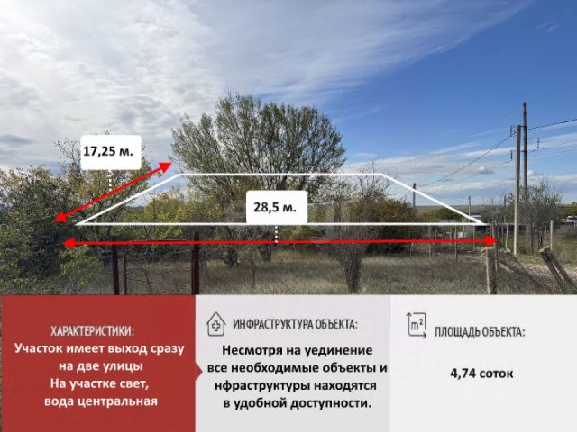 Код объекта: 2016800. Ровный участок с беседкой и светом — заезжай и стройся! Без комиссии для покупателей! Документы в порядке! Полная прозрачность сделки — мы гарантируем вашу безопасность! Описание: Продается отличный участок правильной прямоугольной формы. Идеальное место как для строительства загородного дома, так и для отдыха на выходных. Преимущества участка: • Рельеф: Участок абсолютно ровный, сухой, готов к застройке. Правильная форма позволит удобно расположить дом и другие постройки. • Коммуникации: Электричество уже заведено на участок. Магистральный водопровод проходит непосредственно рядом с границей участка — подключение не составит труда. • Окружение: Улица активно застраивается, соседи живут круглогодично. Район перспективный и быстроразвивающийся. Вам не нужно начинать "с чистого листа" — база для отдыха и строительства уже готова! Звоните прямо сейчас! Отвечаем круглые сутки!!! "TAVRUS" Сделаем Крым Красивее!!!