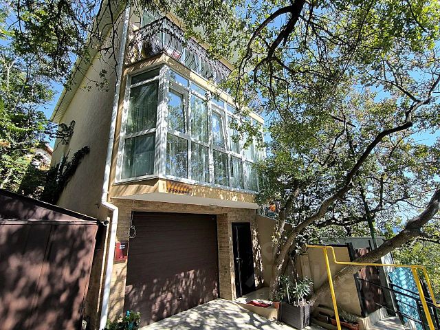 Это 3-х этажный видовой коттедж с гаражом и большой террасой, с которой открывается чудесный вид на море.
