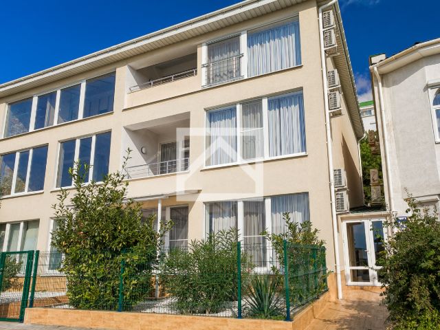 КОД 1134Р Комфортабельный трехэтажный таунхаус, 215,7 квадратных метров, 5 спален, 4 санузла. Расположен в ближайшем пригороде Ялты, в поселке Никита, на закрытой охраняемой территории у береговой линии, в коттеджном комплексе Сон у моря. На территории комплекса: два ресторана, кафе, SPA-центр, плавательный бассейн, парковка. В 100 метрах - закрытый благоустроенный мелкогалечный пляж. РАЗМЕЩЕНИЕ Первый этаж: гостиная с выходом на закрытую террасу и внутренний дворик, кухня с обеденной зоной совмещены, санузел гостевой. Второй этаж: просторный холл оборудован под вторую гостиную, спальня с выходом на балкон с видом на море, санузел с ванной и душевой кабиной совмещены, детская спальня, спальня с выходом на балкон с видом на море. Третий этаж: спальня с выходом на балкон с видом на море, санузел с душевой кабиной, спальня совмещены с кабинетом, выход на балкон с видом на море, санузел совмещен с ванной и душевой кабиной. ИНФРАСТРУКТУРА На территории комплекса: Ресторан с европейским меню, кафе, бар Бассейн с морской водой SPA-комплекс Фитнес центр Детская площадка Парковка Оборудованный мелко-галечный пляж РАССТОЯНИЕ До Ялты - 15 минут езды, 7,5км в сезон, -удобно и морское сообщение - причал в 100 метрах, До пляжа - 2-3 минуты ходьбы Номер объекта: #1/540558/17790