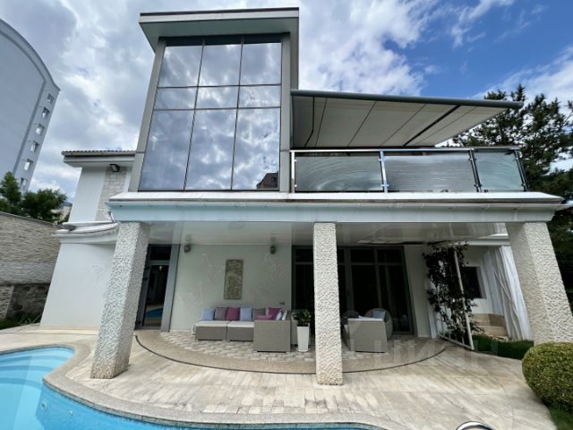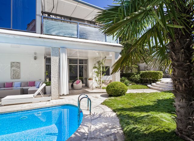 Предлагаем к приобретению современный 2-х этажный дом в средиземноморском стиле, в тихом районе Ялты. Расположен дом на земельном участке площадью 9 соток в собственности и 3 в пользовании . В доме общей площадью 350 кв.м. подключена система Умный дом, установлен 2-х контурный газовый котел Hermann и угольный фильтр-смягчитель воды. Планировка дома включает в себя: цокольный этаж, где находится сауна с комнатой отдыха, душем и санузлом, прачечная и бытовая комната. На 1-м этаже: просторная гостиная с домашним кинотеатром, кухня-столовая, спальня с ванной комнатой и гардеробной. На 2-м этаже: уютный холл с камином focus и выходами на две открытые террасы, на одной из которых установлены спортивные тренажеры и одну закрытую террасу, две спальни с ванными комнатами и большими гардеробными. В доме выполнен ремонт по индивидуальному дизайн проекту, мебель ведущих итальянских производителей Baxter, Giorgetti, Creazioni с сусальным серебром , ковры авторской работы из натуральных кожи и меха, TV Pioneer с проектором и колонками Zingali, лестница Albini& Fontanot, кухня Shaidero, бытовая техника BOSCH, LIEBHERR и Whirlpool, сантехника Villeroy&Boch, Hatria, джакузи WQT, теплые полы, кондиционеры, два подвода воды, две канализации . По периметру дома видеонаблюдение, в домике охраны соответствующее оборудование. Во дворе бассейн с лазерной очисткой системы Аксиоматик, лаунж зона, зона барбекю, санузел. На территории произрастают средиземноморские пальмы, буксус самшит, олива, лимон, киви, гранат, хурма, инжир, фундук, олеандр, сакура, камелии, установлен авто полив. Рядом с домом находятся супермаркеты, рынок, школа, медицинский центр, стадион, хорошая транспортная развязка. Купить загородную недвижимость в переулке Сосновый в городе Ялта.