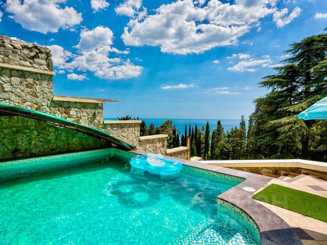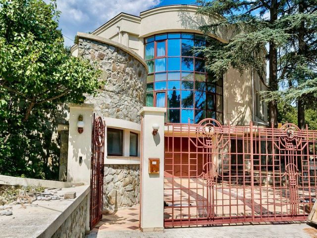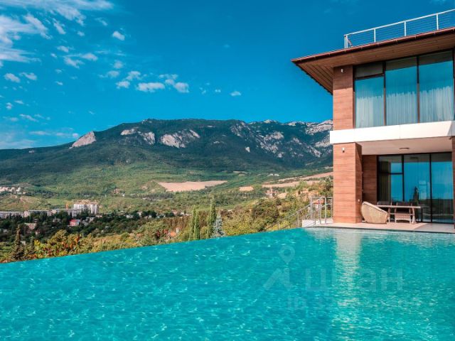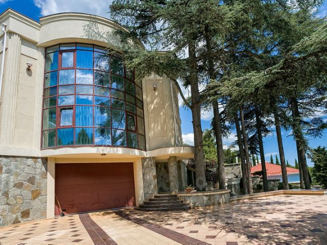 Вилла в современном архитектурном стиле хай-тек на берегу горного озера, на территории охраняемого коттеджного посёлка Магоби. Шикарный лесистый участок площадью 30 соток с собственным хвойным и лиственным лесом и горным ручьём. На земельном участке расположены: основной дом 430 кв.м., дом для гостей 300 кв.м. с крытым подогреваемым, всесезонным бассейном, баня с комнатой отдыха и купелью, беседка барбекю, чайный домик с панорамным застеклением, гараж с помещениям для персонала, теплица, плодоносящий фруктовый сад, гостевая парковка. Основной дом площадью 430 кв.м., планировка дома включает: Цокольный этаж: гараж для двух авто, комната для персонала, сан узел с душевой, котельная. Первый этаж: прихожая, гостиная, кухня-столовая, кабинет, спальня и сан узел. Второй этаж: три спальни с персональными сан узлами, сауну с душевой и выходом на крытую террасу. Над домом эксплуатируемая кровля с обзорными видами на море, горы, заповедник. Планировка гостевого дома включает в себя: Первый этаж: крытый круглогодичный бассейн, кухню-гостиную с террасой и выходом в собственный лес, две комнаты с выходами на балконы, сан узел. Второй этаж: кухня-гостиная, две спальни с выходами на балконы, сан узел. Вся территория с ландшафтным озеленением, несметное количество цветов, кустарников, плодовых деревьев, хвойная роща и собственный грибной лес. Территория комплекса под круглосуточной охраной и видео наблюдением, весь коттеджный посёлок в едином архитектурном стиле, дома заселены. Коттеджный посёлок на берегу горного озера, замечательные прогулочные маршруты, прямой выход в заповедник. В доме все городские коммуникации: вода, канализация, газ, электричество. Удобный асфальтированный подъезд. Идеальный вариант для загородной жизни в лесу при этом до Ялты и самого большого ТРЦ 5 минут на авто, до моря, пляжей, набережной, Приморского парка и тд. 10 минут на авто.