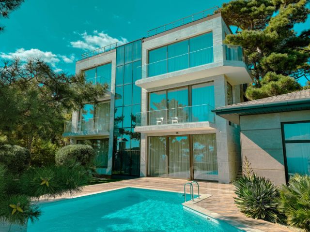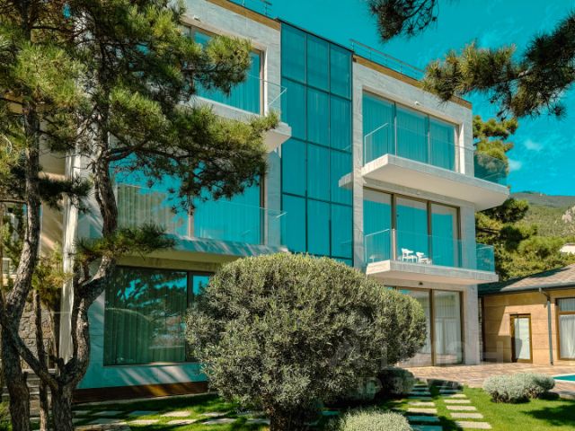 Продажа роскошного дома в замковом стиле с большим крытым бассейном, бильярдом и спортзалом на благоустроенном участке 23,2 соток в Восходе. Вилла расположена в живописном районе поселка Восход и обладает потрясающим видовыми характеристиками. 3-этажный дом площадью 424,7 м² имеет 4 спальни в основном доме, а также отдельную спальню для персонала в хозблоке. Поэтажное описание: На первом этаже расположился кабинет, спальня, кухня-гостиная, санузел, просторная прихожая и технические помещения, также отдельный блок персонала состоящий из студии с кухней с отдельным входом. На втором этаже: две мастер-спальни с выходами на меблированные балконы с видом на хвойный лес и море, детская комната. Также здесь имеется санузел с душевой и изысканная ванная комната. На третьем этаже: комната отдыха-бильярдная, спортзал. Два мезонина, стилизованные под средневековые башни, подчёркивают оригинальный облик здания. Их пространство и окна сочетают в себе простор, естественное освещение и изысканные формы. Изюминкой домовладения является крытый бассейн с отдельной зоной джакузи. На втором этаже банного комплекса, площадь которого 198,7 м², расположилась просторная беседка с летней кухней и зоной для отдыха и приема гостей. В декоре виллы использован мрамор, на полу - паркет из дуба, а в спальнях из бука, лестница между этажами выполнена из натурального массива дерева, светильники и бра подобраны в едином классическом стиле. Дом полностью укомплектован качественной бытовой техникой и итальянской мебелью из натурального дерева. В строительстве дома использовались исключительно натуральные материалы, подходящие под крымский климат с высокой износоустойчивостью: -фундамент -железобетонная плита, -каркас и перекрытия железобетонный монолит с заполнением стен ракушкой, -отделка фасадов- гаспринский камень, штукатурка, керамогранит, мрамор, гранит, -остекление из металлопластиковых конструкций, -покрытие кровли- металлочерепица. Техническое оснащение: -заведены все центральные коммуникации, -сплит-система кондиционирования, -теплые водяные полы, -TV и Wi-Fi. На участке выполнен ландшафтный дизайн, высажено множество экзотических растений, сад с плодородными деревьями. Территория по периметру полностью огорожена капитальным бутовым забором и оснащена системой видеонаблюдения. -До моря 1,5 км или 7 минут на автомобиле -Никитский ботанический сад в 4 минутах на машине -До центра Ялты 13 минут на авто. Идеальное место для постоянного проживания. Добавьте объявление в избранное, чтобы не потерять и следить за обновлением цены! Звоните! На связи 24/7.