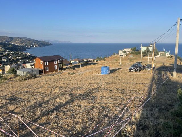 Видовой участок у моря, 6 соток, 5 минут пешком до берега. Небольшой уклон, вид никто не перекроет. К участку два подъезда - у верхней и нижней границы. Рядом есть ещё 4 смежные сотки. Электричество и водопровод по границе участка, скоро газификация, дороги асфальтируются.