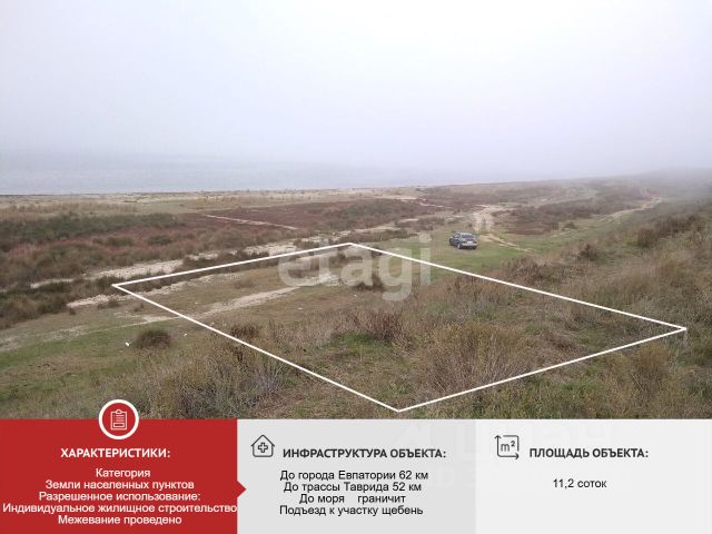 При покупке двух смежных участков - скидка 20% !!! Выгодное предложение, , в 4 км от Евпатории и великолепного песчаного пляжа. Поселковые коммуникации по границе, недалеко от трассы. Можно ли строить дом? Согласно федерального закона 299-ФЗс с 1 марта 2022 г. на земельных участках, предоставленных крестьянско-фермерским хозяйствам разрешено строить, ставить на кадастровый учет и регистрировать права собственности. Требования к строительству жилья: на участке разрешено построить только 1 дом здание не выше 3-х этажей площадь дома не более 500 кв. м, пятно застройки должно составлять не более 0,25% от площади земельного участка Как зарегистрировать такой дом? До 1 марта 2031 года в РФ будет действовать упрощенный режим регистрации таких объектов. Для регистрации дома в Росреестр необходимо предоставить следующие документы: правоустанавливающий документ на земельный участок, технический план и декларацию об объекте недвижимости. На данном этапе участок ЛПХ, но после вхождения в границы населённого пункта будет ИЖС. Спешите приобрести по цене 2024 года, в сезон цена поднимется.