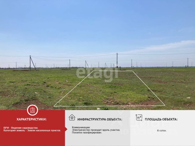 Цена указана за 6 соток! Размежевано по 3, 4, 5, 6 соток! Трасса Евпатория-Мирный. Удаление от трассы 200 и 600 метров, преимущество участков в том, что рядом размежеваны участки для участников СВО, а это значит, что в ближайшем будущем туда будут проведены все коммуникации: электричество, вода и газ! В данный момент ЛЭП находятся рядом, можно подавать на тех. условия и подключать. Вода там находится на глубине 8-9 метров (техническая), для бытовых и прочих нужд Участки находятся на возвышенности, если Вы хотите купить под бизнес проект (строить дома и продавать) - это идеальный вариант, потому что Ваши объекты будут хорошо видны с трассы! Есть много других предложений, звоните! Высылаю видео по запросу. Номер объекта: #1/539098/17283