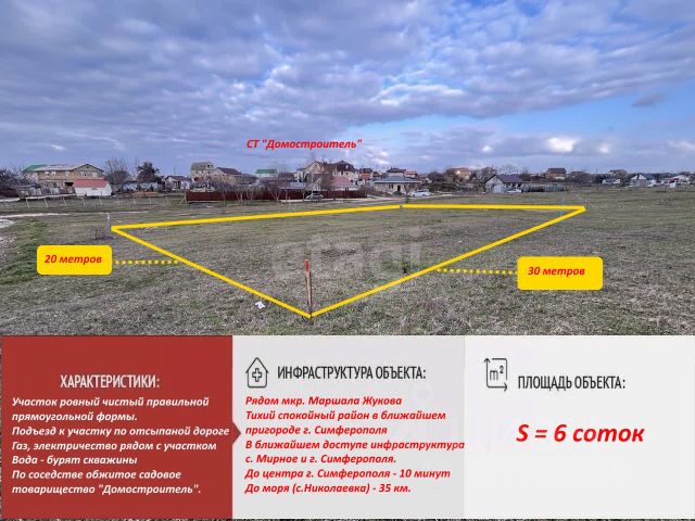 6 соток земли, ровных и готовых принять уютный дом, просторную усадьбу или перспективный инвестиционный проект. Участок четко оформлен, с единственным собственником — никаких сложностей, только чистые эмоции от создания своего пространства.