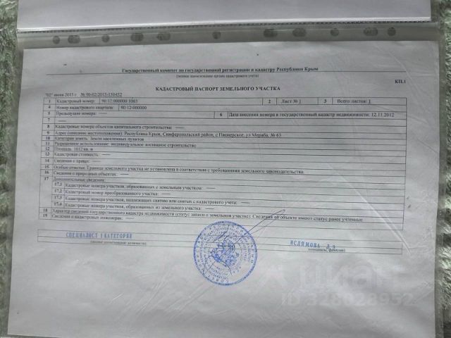 Добрый день! Продаю участок 6 соток в пригороде Симферополя (Крым); кадастровый номер 90:12:041501:1374; категория - земли сельхозназначения; виды разрешённого использования - ведение садоводства; расположен в СПК "Долина" в районе с. Лозовое Добровского сельхозпоселения; участок на высоком, сухом месте с видом на симферопольское водохранилище и горный массив Чатыр-Даг; электричество (у всех соседей счётчики) - по границе участка; газ (идёт сбор средств для газификации посёлка) - по границе СПК; в плане СПК "Долина" 21; вода колодец, скважина; канализация септик; соседи живут круглогодично; российские документы; удобная транспортная доступность; стоимость 1,2 млн. руб.