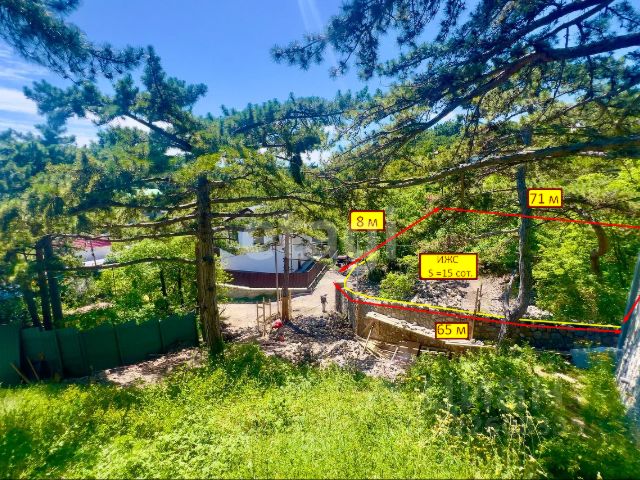 Продам участок, ИЖС находится ниже трассы Ялта-Симферополь , есть небольшой уклон , а также ровная поляна для посадки дома , на участке произрастают сосны и другие зелёные насаждения имеется вид на море, хороший подъезд по новому асфальту, газ ,вода , канализация идут по границе участка , свет 150-200м. Возможен небольшой торг!