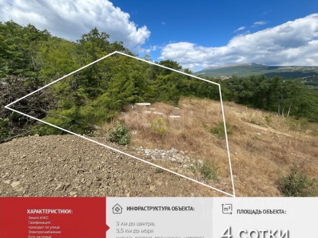 Продаётся участок в Алуште, ул. Туристов — 4 сотки с шикарными видами! Ищете место с атмосферой уюта, природы и уединения, но в черте города? Тогда этот участок — именно то, что вам нужно! Локация: Расположен в черте города Алушта, на улице Туристов — до центра всего 3 км, до моря 3,5 км. Отличный баланс между городской инфраструктурой и природным спокойствием. Площадь: 4 сотки — идеально под строительство жилого дома или дачи мечты. Панорама: С участка открываются захватывающие виды на море и горы. Весь город — как на ладони! Это место буквально дышит простором и красотой Крыма. Инфраструктура: Электричество — по улице. Газификация — по улице, подключение возможно. Водоснабжение — центральная скважина. Подъезд — грунтовая дорога, проезд возможен круглый год. Городская инфраструктура рядом: В Алуште есть школы, детские сады, игровые площадки, магазины, остановки — всё, что нужно для комфортной жизни. Преимущества участка: Городская прописка Живописное и тихое место Экологически чистый район Подходит как для постоянного проживания, так и для дачного отдыха Участок ровный, удобный для строительства Звоните — расскажу подробнее и покажу участок в удобное для вас время! Место действительно достойное внимания. Номер заявки: 8975127 МЫ ГАРАНТИРУЕМ ФИНАНСОВУЮ БЕЗОПАСНОСТЬ ДЛЯ НАШИХ КЛИЕНТОВ. Полное юридическое сопровождение сделки. Высокий шанс одобрения ипотеки. Звоните, с удовольствием ответим на ваши вопросы! Код пользователя: 102570 Номер в базе: 8975127