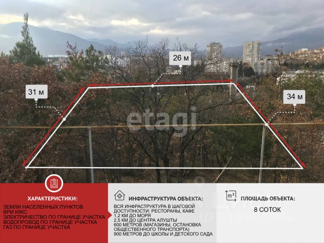 Уникальный земельный участок. Предлагаем к продаже земельный участок площадью 8 соток прямо в городе. С участка открывается вид на море и горы. Участок расположен в благоустроенном районе с развитой инфраструктурой. Отличная локация для строительства жилого дома, отеля, гостевого дома. Удобный подъезд прямо к участку. По границе участка проходят все коммуникации. Рядом расположены магазины, школы, детские сады, остановки общественного транспорта. Уникальное предложение для реализации своей мечты на Южном берегу Крыма. Коммуникации: электричество, вода и газ заведены на участок. Документы РФ, один собственник, без обременения, ИЖС, быстрый выход на сделку. Пишите или звоните! С большим удовольствием ответим на все вопросы и организуем персональную презентацию в любое удобное вам время! Компания "ЭТАЖИ" является официальным партнером всех ведущих банков: РНКБ, ГЕНбанк, банк России, Промсвязьбанк, СБЕР. Юристы компании "ЭТАЖИ" предоставляют полное сопровождение сделки. Электронная регистрация сделки, поможет Вам ускорить процесс переоформления и сэкономить Ваши денежные средства. Компания "ЭТАЖИ" - лучшее решение для покупателей! код объекта: 4861675 МЫ ГАРАНТИРУЕМ ФИНАНСОВУЮ БЕЗОПАСНОСТЬ ДЛЯ НАШИХ КЛИЕНТОВ. Полное юридическое сопровождение сделки. Высокий шанс одобрения ипотеки. Звоните, с удовольствием ответим на ваши вопросы! Код пользователя: 171727 Номер в базе: 4861675 Продается участок ИЖС (индивидуальное строительство) в Алуште.