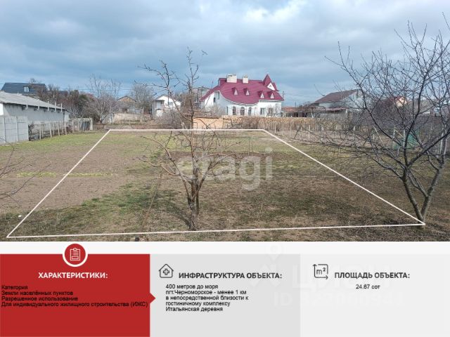 Срочно!Продаётся шикарный участок у моря в пгт.Черноморское, общей площадью 24,67 соток. Статус участка: индивидуальное жилищное строительство (ИЖС). На территории имеются пocтрoйки: жилой дом, гараж, сарай, колодец, подвал. Заведено водocнaбжeниe, газ, электрocнабжение. Очень удачное рaсположeние земельного участка - 400 мeтров дo оборудованного пляжа, по соседству с гостиничным комплексом Итальянская деревня. В границе села есть вся необходимая инфраструктура, такая как: детские сады, школа, детские развлекательные центры. Магазины, аптеки, ФАП, парки и рынок находится в пешей доступности. Транспортное сообщение круглогодичное. Документы Российского образца. Проведу показ в любое удобное для вас время. Звоните, отвечу на все Ваши вопросы. МЫ ГАРАНТИРУЕМ ФИНАНСОВУЮ БЕЗОПАСНОСТЬ ДЛЯ НАШИХ КЛИЕНТОВ. Полное юридическое сопровождение сделки. Высокий шанс одобрения ипотеки. Звоните, с удовольствием ответим на ваши вопросы! Код пользователя: 182478 Номер в базе: 5700264 Продажа участков ИЖС.