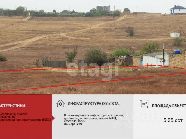 Ваша мечта о доме у моря может стать реальностью! Предлагаем Вам участок 8 соток в живописном пгт. Черноморское! Позвольте себе наслаждаться чистым воздухом, тихим морем и красотой природы! Черноморское - прекрасный выбор для отдыха и постоянного проживания, с развитой инфраструктурой и близостью к морю. Оптимальная площадь участка 8 соток - достаточно для строительства комфортного дома с садом и зоной отдыха Все коммуникации проходят по улице, что значительно упростит подключение. Кадастровые документы РФ в порядке, обеспечивающие безопасность сделки. Этот участок -отличная возможность создать свой уютный уголок в теплом и гостеприимном пгт. Черноморское. Звоните прямо сейчас, чтобы узнать больше и записаться на просмотр! МЫ ГАРАНТИРУЕМ ФИНАНСОВУЮ БЕЗОПАСНОСТЬ ДЛЯ НАШИХ КЛИЕНТОВ. Полное юридическое сопровождение сделки. Высокий шанс одобрения ипотеки. Звоните, с удовольствием ответим на ваши вопросы! Код пользователя: 181144 Номер в базе: 3423999