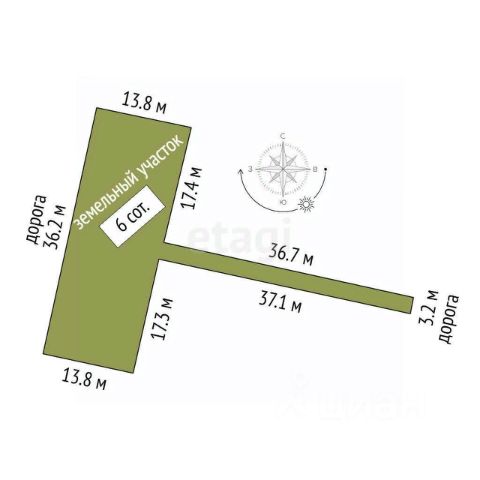 Участок расположен в удачной локации - рядом с центральной улицей, возле участка асфальт, остановка общественного транспорта. Участок очень просторный - 17 соток, прямоугольной, правильной формы.