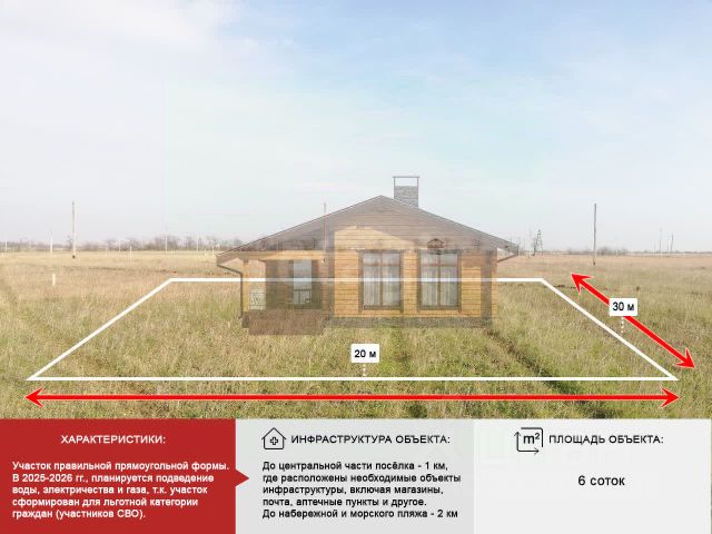 Очень выгодное предложение! Продаётся отличный участок, площадью ровно 6 соток, в посёлке городского типа Николаевка (Симферополь, Крым). Эта территория прекрасно подходит для воплощения мечты о собственном доме или даче, здесь можно комфортно проживать круглый год, посещать летом, для отдыха или же выгодно сдавать недвижимость туристам. Комфортные условия гарантированы, благодаря предстоящему подведению государственных коммуникаций в период 2025-2026 годов: воду, электричество и газ, поскольку Ваш участок относится к льготной категории граждан - участников специальной военной операции (код 13.2). Категория позволяет оформить постоянную регистрацию и предусматривает перспективу индивидуального жилищного строительства (ИЖС)! Местоположение также отличается удобством: всего около километра до центральной части посёлка, где расположены необходимые объекты инфраструктуры, включая торговые точки, почтовые отделения, аптечные пункты и представительства популярных онлайн-магазинов Wildberries и Ozon. Этот уютный и спокойный уголок особенно понравится тем, кто ценит природу и предпочитает проводить свободное время вдали от городской суеты. Свяжитесь с нами, чтобы задать нам любые вопросы и забронировать этот участок! Номер объекта: 10307213 Код пользователя: 192848 Номер в базе: 10307213