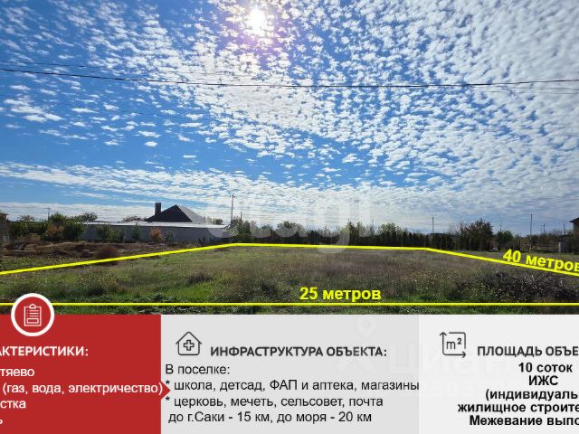 • ✓ В базе Циан 20 земельных участков ИЖС в селе Митяево Сакского района.