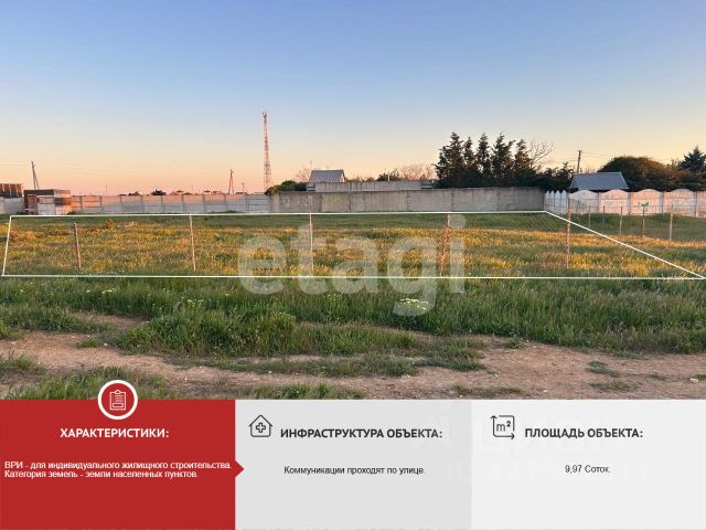 Срочная продажа. Продаётся 10 соток в шикарном месторасположении с.Витино. — Единственный участок площадью в 10 соток,который выходит на две улицы — Участок категории: Земли поселений (земли населенных пунктов) — Для индивидуального жилищного строительства (ИЖС) — Участок находится в близи к морю и пляжу. — Подъездные пути с двух улиц. — Абсолютно все коммуникации:газ,вода,электроэнергия. — Отличный вариант для гостиничного бизнеса и жизни. — Прекрасный песочный пляж,голубое чистейшее море. — Рядом магазины и остановка. Купить участок под индивидуальное жилое строительство с коммуникациями в сельском поселении Молочненское Сакского района.