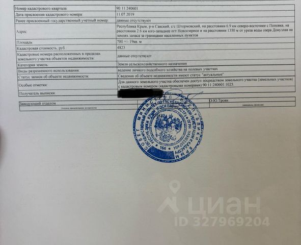 Продам участок 6,19 соток рядом с пгт. Hoвooзёpнoe .