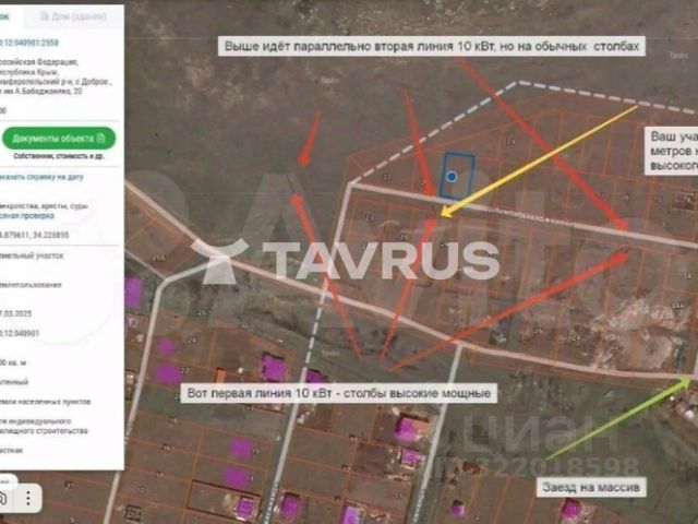 Продается уникальный участок земли в живописном районе с. Доброе, по адресу ул. Гузель! Это идеальное место для строительства вашего мечтательного дома на участке площадью 6 соток, прямоугольной формы, который предлагает великолепный вид на горы и окружающую природу. На участке уже заведено электричество, а для водоснабжения вы можете легко пробурить скважину или выкопать колодец. Здесь вы сможете создать свой уютный уголок, где будет комфортно жить и отдыхать всей семьей. Участок находится в развитом районе с отличной инфраструктурой. В шаговой доступности расположены гимназия и детский сад, что делает его идеальным выбором для семей с детьми. Также рядом находятся супермаркеты, торговый центр, МФЦ, автомойка и автошкола. Удобное транспортное сообщение позволит вам быстро добраться до ближайших городов: до Алушты всего 35 км, до Ялты 40 км, а до Симферополя всего 12 км. Каждые десять минут курсируют маршрутки и троллейбусы, что обеспечивает легкий доступ к необходимым услугам и развлечениям. Не упустите возможность стать владельцем этого прекрасного участка! Звоните прямо сейчас, чтобы узнать больше и записаться на просмотр! Компания "ЭТАЖИ" ваш надежный партнер в мире недвижимости! Номер объекта: 2610209. МЫ ГАРАНТИРУЕМ ФИНАНСОВУЮ БЕЗОПАСНОСТЬ ДЛЯ НАШИХ КЛИЕНТОВ. Полное юридическое сопровождение сделки. Высокий шанс одобрения ипотеки. Звоните, с удовольствием ответим на ваши вопросы! Код пользователя: 116175 Номер в базе: 2610209 Купить участок под индивидуальное жилое строительство с коммуникациями в селе Доброе Симферопольского района.