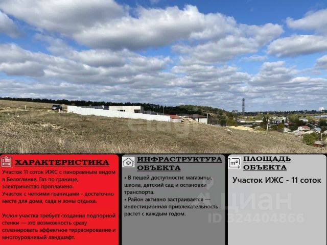 Продается участок 8.8 соток под строительство дома в селе Мирное! Мечтаете о собственном доме в тихом и живописном месте? Тогда это предложение для вас! Почему этот участок? 8.8 соток, категория ИЖС с четкими границами — идеальный размер для строительства дома и обустройства сада. Удобный подъезд по хорошей грунтовой дороге. Рядом уже есть газ и электричество — все для комфортной жизни. Участок находится в спокойном районе с жилой застройкой, где соседи активно строятся и живут круглый год. Природа и экология: Рядом лес и озеро — свежий воздух, прогулки и отдых на природе прямо под боком. Тишина и уют — идеальное место для жизни за городом. Инфраструктура: В шаговой доступности: школа, детский сад, магазины и остановки общественного транспорта. До центра Симферополя всего 10 минут на машине. До моря — 35 км, что удобно для поездок на пляж. Документы: Все оформлено по закону, готово к сделке. Не упустите шанс! Звоните прямо сейчас, чтобы узнать подробности и организовать просмотр участка. Добавляйте объявление в избранное, чтобы не потерять! Номер объекта: 2695198 Код пользователя: 156394 Номер в базе: 2695198 Продаю участок ижс.