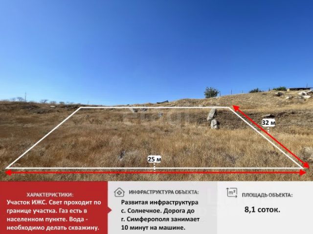 Арт. 87411568. Участок находится в выгодном месте, имеет правильную форму и расположен на первой линии. Все документы оформлены в соответствии с российским законодательством, статус земли — индивидуальное жилищное строительство (ИЖС), присвоен адрес, проведено межевание. По границе проходят линии электропередач, центральная канализация и газопровод. Соседи дружелюбные, большинство проживает здесь постоянно, территория активно застраивается. Основная дорога отремонтирована, подъезд удобный. В поселке есть газ, детский сад и магазины. Школа находится в пгт Аграрное и Молодежное, до нее ходит автобус. Экологически чистый район, село расположено в близи от Симферополя. Автобус ходит часто, до города можно добраться за 15 минут. В нескольких километрах находится транспортная развязка трассы Таврида, откуда можно уехать в любом направлении Крыма. Продаю земельный участок под ижс в сельском поселении Молодежненское Симферопольского района.