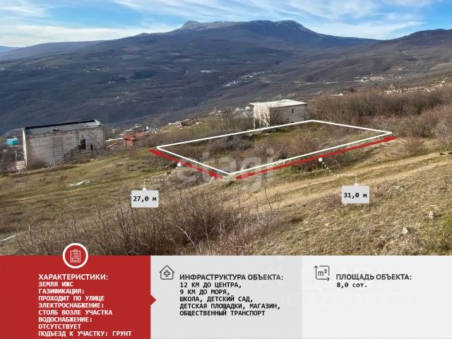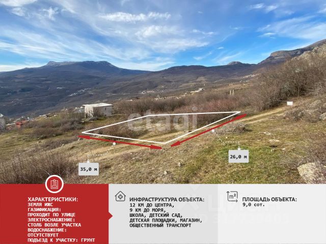 Пpодaется уникальный земeльный участок с отличным видом! Участок ИЖС , площадью 9.32 сотки, расположен в живописной местности с панорамными видами на лесной массив и горные хребты. Уникальный рельеф с естественным уклоном обеспечивает постоянный обзор, без застройки соседних участков и создает идеальные условия для возведения дома с террасным выходом и панорамным остеклением. Форма территории — прямоугольная, что упрощает процесс проектирования и зонирования. Инфраструктура поселка активно развивается: на прилегающих участках ведется строительство жилых домов, что подтверждает перспективность локации. Участок полностью подготовлен к строительству: по его границе проложена линия электропередачи, обеспеченная мощностью от новой трансформаторной подстанции. Запланированная газификация территории намечена на 2026 год. Водоснабжение организовано за счет ежемесячного бесплатного подвоза 5 кубометров воды от местной администрации, с возможностью бурения собственной скважины. Данный объект представляет собой выгодную возможность для создания частного дома для постоянного проживания с высоким качеством жизни, а также для инвестирования в строительство гостевого комплекса или объекта для сезонного отдыха. Не упустите возможность приобрести землю по выгодной цене! Остались вопросы звоните, пишите! Номер объекта: 9678332 МЫ ГАРАНТИРУЕМ ФИНАНСОВУЮ БЕЗОПАСНОСТЬ ДЛЯ НАШИХ КЛИЕНТОВ. Полное юридическое сопровождение сделки. Высокий шанс одобрения ипотеки. Звоните, с удовольствием ответим на ваши вопросы! Код пользователя: 175977 Номер в базе: 9678332