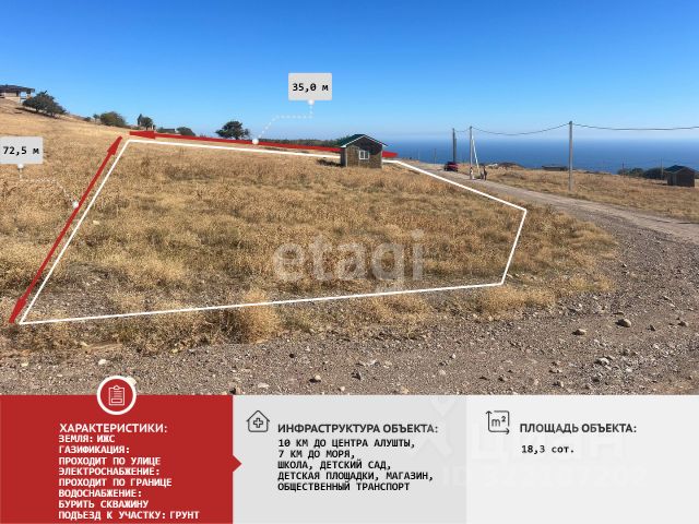В продаже земельный участок в городе Алушта, село Лучистое! Общая площадь участка: 8,4 соток. Назначение: индивидуальное жилищное строительство. Отличный вариант для вашего будущего загородного дома. Участок видовой, имеет не перекрываемый вид на море и горы. Расположение: в поселке Лучистое. Есть школа 1,5 км, детский сад 1 км, до остановки 500м, до магазинов 1 км. 5 км от моря, 8 км от города Алушта. Массив активно застраивается! Форма участка прямоугольная, рельеф ровный. Удобные подъездные пути. Легко добраться на автомобиле. На соседних участках ведутся строительные работы. Коммуникации: электричество по границам, возможно бурение скважины для воды 50-60 метров. Есть возможность оформить ипотечное кредитование. Звоните, организуем показ в удобное для Вас время! Код объекта:4536275. МЫ ГАРАНТИРУЕМ ФИНАНСОВУЮ БЕЗОПАСНОСТЬ ДЛЯ НАШИХ КЛИЕНТОВ. Полное юридическое сопровождение сделки. Высокий шанс одобрения ипотеки. Звоните, с удовольствием ответим на ваши вопросы! Код пользователя: 122616 Номер в базе: 4536275