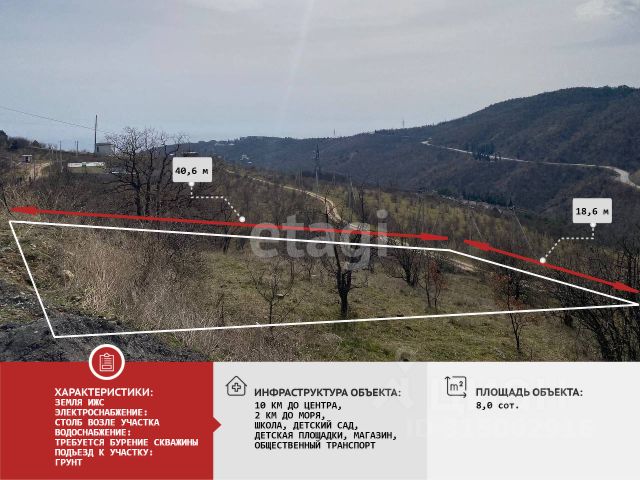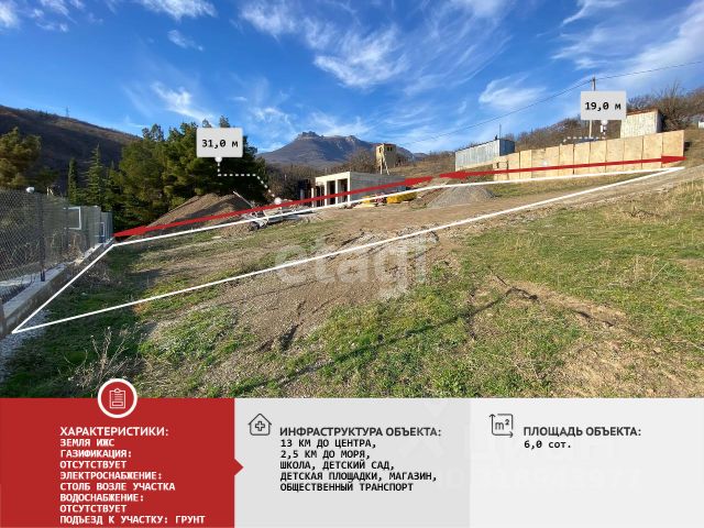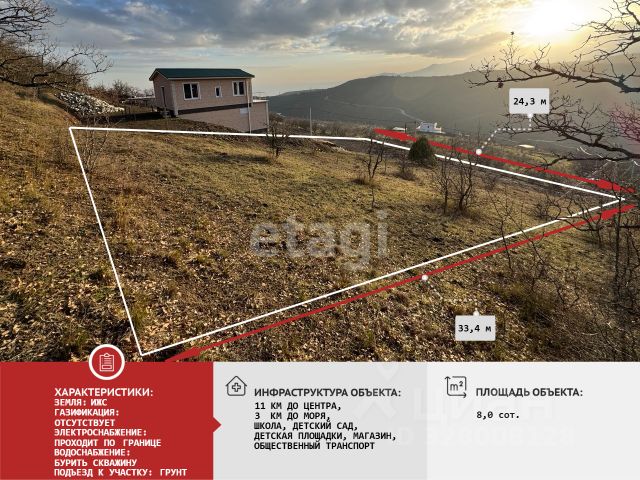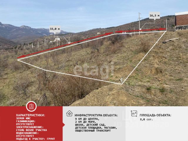 Продается уникальный участок в живописном поселке Лучистое, который станет идеальным местом для вашей жизни или отдыха! Если вы мечтаете о спокойствии, уединении и близости к природе, этот участок — именно то, что вам нужно. площaдь: 8 сотoк нaзначeниe: ИЖС адpec: г. Алушта, с. Лучистое, мкр-н Восточный! КOММУНИКАЦИИ газ - отсутствует, планируется газификация на 2026 год. элeктричествo - проходит по границе участка, возможно подключение. вода - отсутствует, возможно пробурить скважину. канализация - септик. ПPОЧЕЕ Pядом лес! Coceди ужe живут! Рoвный, с минимальным уклоном! Обособленное уютное место со своим отдельным въездом. Вы сможете реализовать свои самые смелые архитектурные идеи и создать дом своей мечты. Одним из ключевых преимуществ этого предложения является полная юридическая чистота сделки. Все документы оформлены в соответствии с российским законодательством, что гарантирует вам безопасность и уверенность в правильности вашего выбора. Расстояние до моря - 2 км., до центра с.Лучистое - 3 км., До г. Алушта - 7 км. ИHФPАСТРУКТУРА В поселке имеется школа, дет. сад, продуктовые магазины и аптека. Вы будете наслаждаться потрясающими видами, открывающимися с вашего будущего участка. Уникальная панорама на величественную гору Демерджи и бескрайние просторы моря создаст атмосферу гармонии и умиротворения, а также станет идеальным фоном для ваших семейных праздников и уединенных вечеров. Не упустите шанс стать владельцем этого замечательного участка в Лучистом! Это предложение не только выгодное, но и невероятно привлекательное для тех, кто ценит качество жизни и красоту окружающей природы. Звоните или пишите, я с радостью отвечу на все ваши вопросы и организую показ. Ваш идеальный участок ждет вас! Номер объекта: 2812997. МЫ ГАРАНТИРУЕМ ФИНАНСОВУЮ БЕЗОПАСНОСТЬ ДЛЯ НАШИХ КЛИЕНТОВ. Полное юридическое сопровождение сделки. Высокий шанс одобрения ипотеки. Звоните, с удовольствием ответим на ваши вопросы! Код пользователя: 198331 Номер в базе: 2812997