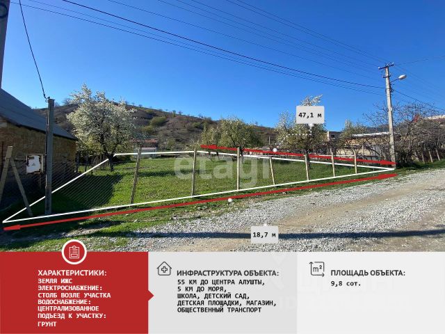 Арт. 129547326 Видовой участок 4 соток у моря ИЖС! Вид на море и горы. Все коммуникации рядом. Продается уникальный земельный участок 4 соток в живописном селе Малореченское (Большая Алушта). Это не просто земля — это ваш шанс построить "семейное гнездо" в одном из самых красивых мест Крыма, где горы встречаются с морем. Главные преимущества, которые вас покорят: Идеальная локация: Всего 800 метров до собственного галечного пляжа и лазурного моря! Тихий, экологически чистый район выше улицы Виноградной. Простор и приватность без городской суеты. Невероятные виды: С участка открывается панорамный вид на море и живописные крымские горы. Каждое утро — с восходом над водой, каждый вечер — с закатом в горах. Ваша терраса станет лучшим местом для отдыха. Полная готовность к строительству: Электричество по границе участка. Вода — возможность собственной скважины Категория земель: Земли населенных пунктов. Разрешенное использование: Для индивидуального жилищного строительства (ИЖС). Можно строить капитальный дом для круглогодичного проживания. Параметры: Участок имеет небольшой уклон, площадью 4 сотки. Частная собственность. Все документы в порядке, сведения внесены в ЕГРН. Инфраструктура: больница, аптека, церковь, магазины, кафе, парк, детская площадка, дом культуры и творчества, продуктовый рынок. Расстояние до Алушты 26 километров.Идеально как для постоянного проживания, так и для строительства роскошной виллы для отдыха. Кадастровый номер: 90:15:060103:905 Это место для тех, кто ценит: Тишину и свежий морской воздух. Быструю доступность к морю пешком. Потрясающую природу и вдохновляющие виды. Возможность создать дом своей мечты "с нуля" со всеми удобствами. Не упустите возможность стать владельцем кусочка крымского рая! Участок действительно хорош, спрос на такие локации высокий. Звоните, чтобы договориться о просмотре.