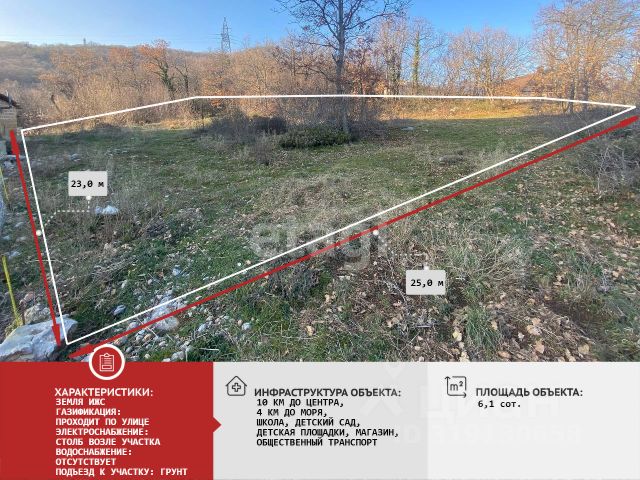 Об участке: Ландшафтно красивый участок интересной и в полне удобной формы в 6.01 сот земли под ИЖС. Хорошие видовые характеристики на горы и море. Хорошая грунтовая, подъездная дорога к участку. Все необходимые коммуникации рядом, в пятидесяти метрах от участка. Есть небольшое ограждение по территории участка. Очень удобный участок под застройку Вашего дома. О районе: Это невероятно красивый район по расположению у подножья горы Парагильмен. Утопающего в лесной и реликтовой растительности Крыма. Красивые высокогорные виды и ландшафты с множеством краснокнижных растений. Основная часть данного района, это заповедники. И лишь только некоторая ее часть оформлена законодательно в частную собственность. Это небольшое поселение собственников частных, современных домовладений. Поистине тихое, райское место для жизни и отдыха. Со всеми видовыми характеристиками. Номер объекта: #1/537293/21341