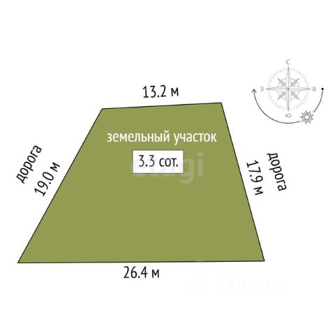 прямоугольный участок, на участке котлован под строительство здания, состояние дороги для подъезда хорошее, участок находится в спальном районе, 200 метров до рынка, автобусной остановки и магазинов, есть детская площадка