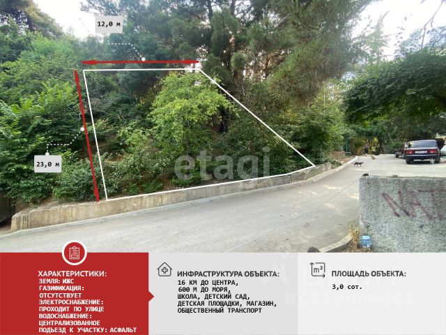 Объект 570. Продается участок в г.о. Алушта пгт Партенит в живописном прибрежном районе , одном из самых престижных районов Черноморского побережья, идеален для строительства дома своей мечты либо инвестиционного проекта! Общее описание: * Участок имеет удобное расположение и подъездные пути. * Удобное местоположение: всего в 20 минутах езды до центра Ялты, в 100 метрах от живописного пляжа, в 3 минутах размеренным шагом до остановки общественного транспорта и продуктовых магазинов. * Все коммуникации подведены к границе участка. * Вид разрешенного использования: Предпринимательство. * Асфальтированный подъезд. * В 5 минутах езды Южнобережное шоссе, что позволит добраться до любой локации в считанные минуты. Эксклюзивное и приватное место: * Идеально подходит для строительства загородного дома вашей мечты, ведения бизнеса и иного инвестиционного проекта на берегу Черноморского побережья. Редких, краснокнижных деревьев и растений на участке нет. Район с развитой инфраструктурой. Идеальное место для тех, кто ценит чистый морской воздух, покой и гармонию с природой. Поддержка и услуги: * Мы окажем поддержку в получении РНС и ТУ на подключение коммуникаций до сделки. * Поможем с подключением коммуникаций и утилизацией зеленых насаждений. * Все сопутствующие услуги на земельном участке с гарантией на все виды работ. Документы: * Все документы проверены, один взрослый собственник. * Быстрый выход на сделку, рассматриваем любую форму оплаты. Преимущества работы с нами: * Вы получите полную информацию о ПЗЗ, истории участка, ограничениях строительства и подземных сетях. * Предоставим консультации по оптимальным решениям для строительства, включая советы по экономии на подпорных стенках. * Наша репутация — в интересах клиента! У нас 8 офисов в Крыму и более 10 000 успешных сделок за 6 лет работы. * Наличие большой базы предложений, включая неофициальные продажи, а также собственная строительная компания с гарантией на все виды работ. Не упустите шанс стать владельцем этого великолепного участка для строительства! Звоните для получения дополнительной информации и организации просмотра!