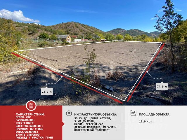 К продаже представлен участок на побережье Черного моря! Участок имеет смежный и продаются вместе. Располагаются в селе Приветное в 5 км от моря, при этом вид на море с участка открыт, дорога до моря прямая и пологая. Одной стороной примыкает к лесному массиву. Имеет ровную прямоугольную форму. Смежных границ с соседними земельными наделами не имеет. Частная собственность, ИЖС. Очень перспективное место, подходящее как для собственного проживания так и для постройки миниотеля или гостиницы. Село Приветное относится к городскому округу Алушта. Расстояние до Алушты 51 км, до Судака 35 км. Звоните проведу показ данного участка в удобное время. Номер объекта 9621470 МЫ ГАРАНТИРУЕМ ФИНАНСОВУЮ БЕЗОПАСНОСТЬ ДЛЯ НАШИХ КЛИЕНТОВ. Полное юридическое сопровождение сделки. Высокий шанс одобрения ипотеки. Звоните, с удовольствием ответим на ваши вопросы! Код пользователя: 180846 Номер в базе: 9621470