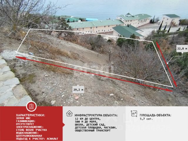 Это без преувеличения головокружительно видовая локация! Стандартно ровный участок 5 сот. ИЖС правильной прямоугольной формы с небольшим спланированным уклоном. Хороший подъездной грунтовый путь - дорога к участку и грунтовая площадка для парковки автотранспортных средств. На участок заведено электричество и газификация. По водоснабжению - планируемая скважина и канализация. Для этого уже проведены изыскательные работы. Получены технические условия.