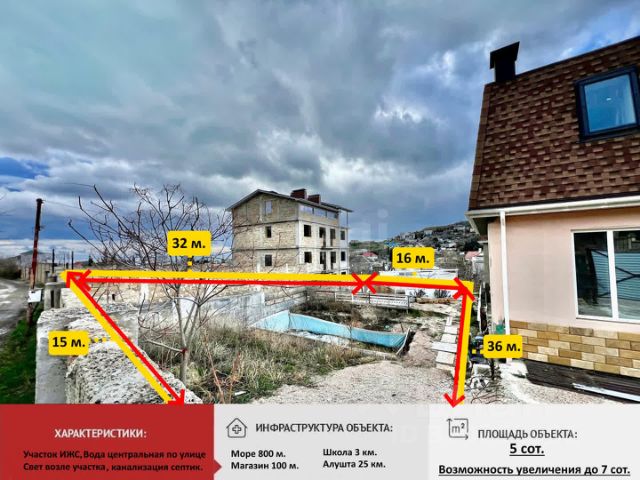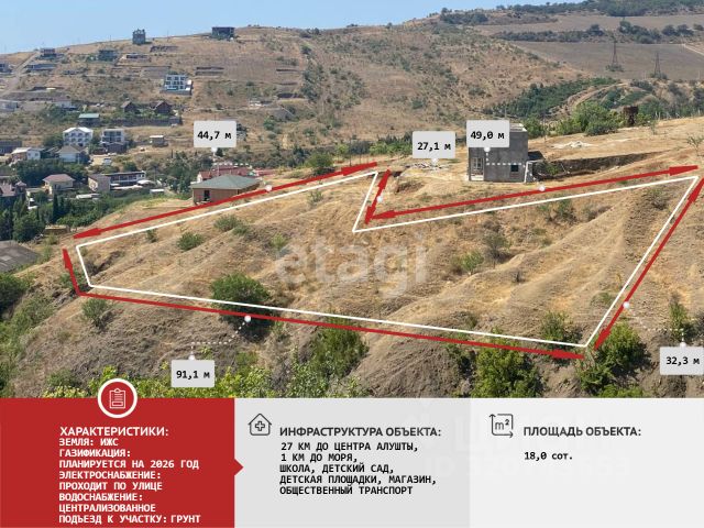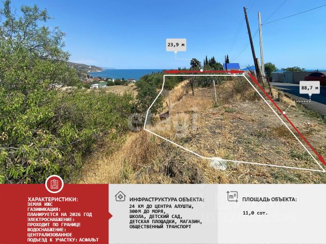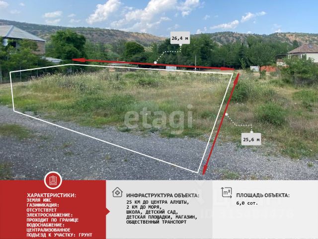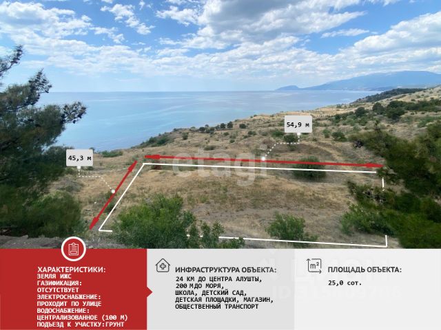 Вашему вниманию видовой участок под индивидуальное жилищное строительство (ИЖС) площадью 10 соток, 300м до моря. Участок имеет правильную прямоугольную форму. Южный берег Крыма! Живописный поселок Солнечногорское, расположился у самого моря и в 20 км от Алушты. Участок предлагает потрясающие панорамные виды на окружающую природу, что создает идеальные условия для комфортной жизни и отдыха. На участке имеется возможность подключения к электроснабжению и водоснабжению, что обеспечивает все необходимые условия для строительства вашего дома. Все документы оформлены в соответствии с законодательством Российской Федерации, что гарантирует безопасность сделки и отсутствие правовых проблем. Компания "ЭТАЖИ" является официальным партнером всех ведущих банков. У наших клиентов, есть возможность направить пакет документов на получение ОДОБРЕНИЯ ипотеки прямо из нашего офиса по всем банкам! Юристы компании "ЭТАЖИ" предоставляют полное сопровождение сделки. Электронная регистрация сделки, поможет Вам ускорить процесс переоформления и сэкономить Ваши денежные средства. Номер объекта: 4426909. МЫ ГАРАНТИРУЕМ ФИНАНСОВУЮ БЕЗОПАСНОСТЬ ДЛЯ НАШИХ КЛИЕНТОВ. Полное юридическое сопровождение сделки. Высокий шанс одобрения ипотеки. Звоните, с удовольствием ответим на ваши вопросы! Код пользователя: 171727 Номер в базе: 4426909