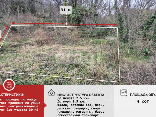 Видовой участок в Партените! Не упустите возможность приобрести землю в очень уютном уголке в одном из самых востребованных курортов Южного берега Крыма. Площадь участка - 4,01 сотки; Категория: земли населенных пунктов; Вид разрешенного использования: индивидуальное жилищное строительство; Границы участка вынесены; Электричество - 20 метров от участка; Водоснабжение - техническая вода в 100 метрах, индивидуальная скважина; Газ - 20 метров от участка. Канализация - индивидуальный септик До центра Партенита -15 минут пешком, 5 минут на авто; До набережной и пляжа - 1,5 км. До Ялты -30 минут езды, до Алушты - 20 минут езды. Регулярно курсирует общественный транспорт. Соседние участки активно застраиваются, дорога частично отсыпана, частично грунт. К самому участку подъезд только запланирован. За более подробной информацией обращайтесь по телефону. Оперативный показ! Номер объекта: 9097306 МЫ ГАРАНТИРУЕМ ФИНАНСОВУЮ БЕЗОПАСНОСТЬ ДЛЯ НАШИХ КЛИЕНТОВ. Полное юридическое сопровождение сделки. Высокий шанс одобрения ипотеки. Звоните, с удовольствием ответим на ваши вопросы! Код пользователя: 198339 Номер в базе: 9097306