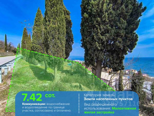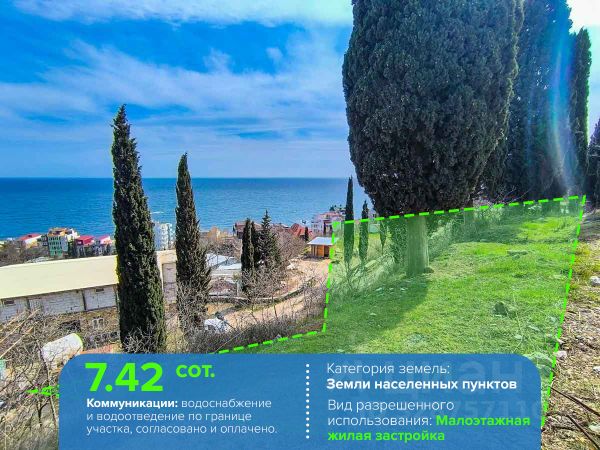 Объект 19994. Предлагается к продаже видовой участок площадью 4 сотки, предназначенный для индивидуального жилищного строительства (ИЖС), расположенный в пгт Береговое. До моря всего 510 минут ходьбы, а сам поселок окружен горами и вековыми деревьями. В шаговой доступности находятся магазин, продуктовый рынок, кафе и медицинский пункт. Школьный автобус доставляет детей в школу и детский сад в пгт Симеиз. Участок имеет уклон, что предоставляет отличную возможность построить дом каскадом. Водопровод проходит по границе участка, а центральная канализация расположена вдоль него. Подъездной путь к участку возможно проложить плиты перекрытия, подход к участку имеется. Возможно из подхода сделать заезд, но это нужно на месте показывать. Участок тупиковый. Это уникальное предложение. За дополнительной информацией обращайтесь по телефону. Наша компания является аккредитованным застройщиком. Выполнит строительство Вашего дома качественно и в сжатые сроки, как за наличный расчет, так и в ипотеку, без переплат.