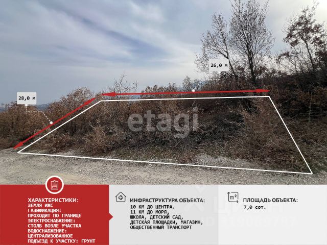 Участок ИЖС 8 соток с видом на горы — Верхняя Кутузовка, Алушта, Крым Площадь: 8 соток Главное преимущество — идеальное место для дома у моря: • Участок с панорамным видом на горы, в окружении зелени. • Удобный рельеф — уже сформирована строительная полка, участок готов к началу работ. • Собственный подъезд — мимо никто не проезжает, тишина и приватность. • Все соседи уже построились — сформированный жилой район без строительного шума. Коммуникации: • Электричество по границе участка. • Газ по границе. • Водоснабжение — центральное. • Канализация — септик. Инфраструктура: • До продуктового магазина — 8 минут пешком или 2 минуты на авто по живописной дороге и видами на горы и Черное море. • До остановки общественного транспорта — 13 минут пешком или 4 минуты на авто. • Удобный выезд на Симферопольское шоссе. Расположение: • Участок находится в Верхней Кутузовке, всего в 14 минутах от центра Алушты. • Район застроен — вокруг жилые дома, спокойные соседи. • Удобный асфальтированный подъезд к участку. • Тихое, уединённое место в окружении природы и при этом с быстрым доступом ко всей городской инфраструктуре. Это предложение — для тех, кто хочет построить дом в Крыму в престижном и спокойном районе, среди гор, зелени и с хорошей транспортной доступностью. Участок юридически чист, полная готовность к продаже и строительству. Пишите или звоните — есть и другие уникальные участки и дома по всему Крыму. Не работаем с посредниками и риелторами.