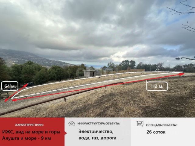Массив в большей Алуште (Верхняя Кутузовка продажа по участкам) ПРАВОВОЙ СТАТУС И ЦЕЛЕВОЕ НАЗНАЧЕНИЕ Подтвержденное право собственности, проведено межевание, все документы оформлены по законодательству РФ. Имеются кадастровая выписка и выписка из ЕГРЮЛ. Продажа осуществляется от собственника (юр. лицо) Категория земель: Земли поселений. Вид разрешенного использования: ИЖС. МЕСТОРАСПОЛОЖЕНИЕ Административно относится к Алуштинскому городскому округу (Большая Алушта) и расположено в непосредственной близости от курортного города. В 1,5 км проходит крупная автомобильная дорога Симферополь-Ялта (Е105). Морское побережье находится в 8 км, а время в пути на автомобиле до центра Алушты занимает 15 мин. ПРЕИМУЩЕСТВА Видовые земельные участки расположены в живописном месте над Алуштой, имеют преимущественно равнинный рельеф (отпадает необходимость в выравнивании земли). С каждого участка открываются панорамные виды на море. Идеальное место для прогулок, любованием красотой Крымских гор. КОНЦЕПЦИЯ Возможная покупка земельных участков в живописном районе Горного Крыма, с развивающийся инфраструктурой, с хорошей транспортной доступностью до моря, подходит для индивидуального строительства частного дома, коттеджа, кемпинга, отеля и т.д. Также созданная самой природой многофункциональная база, позволяет рассматривать массив целиком для возведения коттеджного поселка, туристического комплекса (кемпинг), апарт-отеля, детского оздоровительного центра и т.д. Торг возможен. Звоните, чтобы успеть забронировать, получить подробную информацию и лично посмотреть участок!