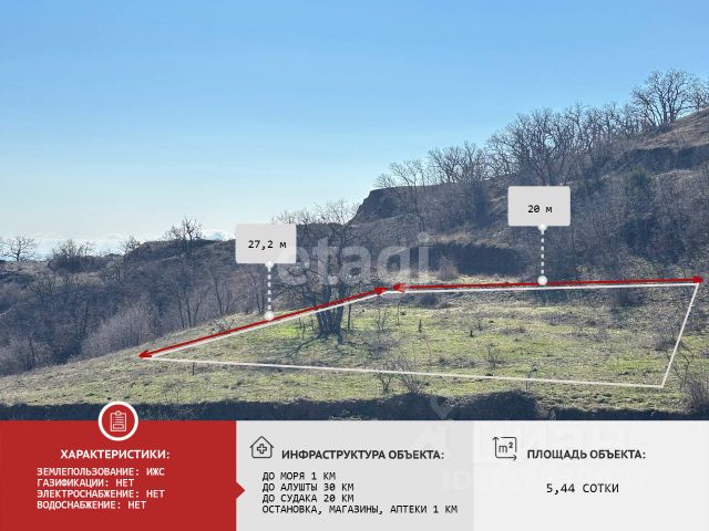 Участок посреди гор и красоты! До моря - 6,5 км (10 мин езды) Преимущества участка: Участок около асфальтированной дороги - удобный подъезд сразу при въезде в село. Все готово для старта - коммуникации: - Электричество: по границе участка - Водообеспечение/водоотведение: по границе участка центральный водопровод - Газ: Ожидается газификация в 2026-2027 Юридически все чисто. Категория: земли населённых пунктов. ВРИ: ИЖС. КН: 90:23:070701:1. Документы готовы к сделке. Одно из красивейших мест в Судакском районе! Чистый горный воздух, лес, речка рядом - вся красота природы вокруг этого места. И до моря ехать всего 10 минут. Идеальное сочетание! Перспектива Отличная инвестиция, так как село постепенно превращается в элитное - здесь строятся красивые дома и особняки, улучшается инфраструктура. Можно построить жилой дом для себя или гостевой дом! Ровный участок, правильной формы Удобен под ИЖС Рядом второй участок - можно объединить до 16 соток Скидка при покупке двух участков.