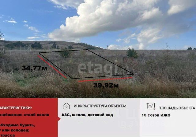 Арт. 70546967 Продаётся земельный участок в с. Кизиловка Белогорского р-на общей площадью - 23 сотки. Вид разрешенного использования - ИЖС. К участку нарезана грунтовая дорога от трассы 200м. Проведено электричество до самого участка! Участок находится в живописном месте, рядом лес, небольшое озеро. Чистый воздух, красивая природа, уникальные виды позволит Вам отдохнуть и насладиться тишиной и спокойствием в дали от городской суеты! В селе есть магазины, ходит общественный транспорт. Межевание проведено, все документы РФ готовы к сделке. 90:02:190301:281 Торг реальному покупателю! Продам земельный участок в Белогорском районе республики Крым.