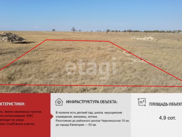 Участок площадью 4.91 сотки в селе Межводное предназначен для индивидуального жилищного строительства. Земля относится к категории населенных пунктов. Участок отличается ровным рельефом и правильной прямоугольной конфигурацией, что оптимально для проектирования и размещения жилого дома любой архитектуры. К границе территории подведены магистральные коммуникации: центральный газ, электричество и водоснабжение. Преимуществом является расположение в километре от Черного моря и непосредственная близость к соленым озерам Ярылгач и Джарылгач, известным своими лечебными грязями. С участка открывается панорамный вид. Подъезд осуществляется по асфальтированной дороге, что обеспечивает легкую доступность в любое время года. Село Межводное обладает развитой инфраструктурой для постоянного проживания: здесь работают детский сад, школа, медицинские пункты, супермаркеты, столовые и кафе. Налажено регулярное автобусное сообщение с районным центром Черноморское (16 км) и Евпаторией (50 км). Объект представляет интерес как для строительства собственного дома для круглогодичного или сезонного проживания, так и для капиталовложений в недвижимость курортного региона с высоким потенциалом роста ее стоимости. Возможна покупка в ипотеку, проведение онлайн-показа и полностью дистанционное оформление сделки. Звоните! МЫ ГАРАНТИРУЕМ ФИНАНСОВУЮ БЕЗОПАСНОСТЬ ДЛЯ НАШИХ КЛИЕНТОВ. Полное юридическое сопровождение сделки. Высокий шанс одобрения ипотеки. Звоните, с удовольствием ответим на ваши вопросы! Код пользователя: 183659 Номер в базе: 9268882