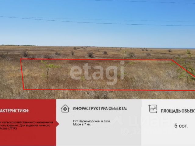 Продаётся участок 7,23 соток, Черноморский р-н, на территории Новосельского селького совета, район правой стороны автотрассы "Черноморское-Окуневка". Категория земель - Земли сельскохозяйственного назначения. Вид разрешенного использования - Ведение личного подсобного хозяйства на полевых участках. Участок имеет правильную квадратную форму, ровный рельеф, что упрощает планировку и строительство. С видoм нa мopе! Разрешенное использование — ЛПХ на полевых участках. Расстояние до асфальтированной дороги — 250 метров, что обеспечивает удобный подъезд в любое время года. Вдоль территории проходит ЛЭП. Расстояние до моря 7 км. До ближайших поселков с.Калиновка 4 км, с.Новосельское 6 км. В с. Новосельское есть вся необходимая инфраструктура: магазины, школа, детский сад, поликлиника. Есть возможность приобрести соседний участок. Один собственник. Документы готовы к сделке. Звоните, отвечу на все интересующие вопросы. МЫ ГАРАНТИРУЕМ ФИНАНСОВУЮ БЕЗОПАСНОСТЬ ДЛЯ НАШИХ КЛИЕНТОВ. Полное юридическое сопровождение сделки. Высокий шанс одобрения ипотеки. Звоните, с удовольствием ответим на ваши вопросы! Код пользователя: 183659 Номер в базе: 9847609 Купить земельный участок в селе Новосельское Черноморского района.