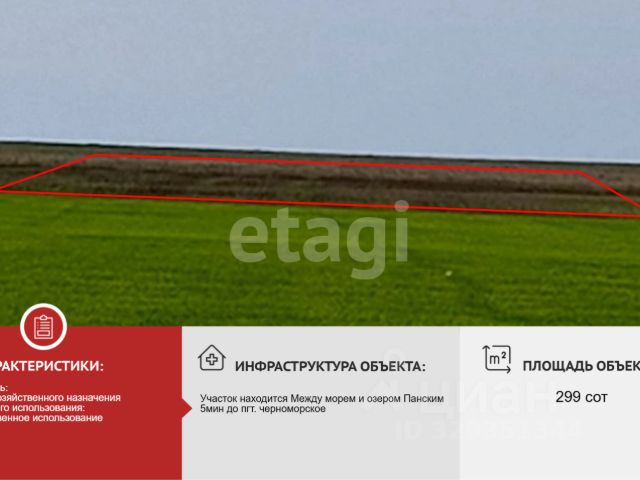 Доброго времени суток! Успейте приобрести отличный участок возле моря в перспективном и стремительно развивающемся районе Крыма! очень удобное расположение участка первая линия от трассы, очень удобные подъездные пути! Участок полностью огорожен забором, свет и вода (скважина) уже на участке, газификация запланирована на конец 26-27начало! Я, являюсь собственником данного участка документы готовы к сделке!!Соседи проживают постоянно! Цены только растут, а после газификации улетят в КОСМОС!!! Поэтому не упустите шанс стать обладателем данного участка сегодня! Звоните с радостью отвечу на все ваши вопросы, если они остались! Связь иногда БАРАХЛИТ но вы не стесняйтесь наберите ещё разок и точно дозвонитесь!!!