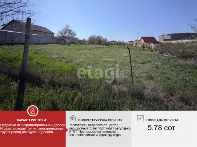 Продаётся участок 6,3 сот. (ИЖС) пос. Черноморское, ул. Амосова. Участок правильной прямоугольной формы Категория земель: Земли Населённых Пунктов. Разрешённое использование: ИЖС Кадастровый номер - 90:14:010102:2511 Электричество по границе участка вода - скважина (нужно делать) канализация - септик (нужно делать) газ по границе участка Расположен на берегу Черного моря, район активной застройки. Шикарный вид на обустроенный Воронцовский парк. Объекты инфраструктуры (дет сад, школа, рынок, торговые центры в шаговой доступности) Экологичный район, жемчужина западного берега Крыма. Чистейшее море, пляж. До моря, пляжа 1300 метров. Районный центр, поселок Черноморское динамично развивается, запущены ряд программ по развитию инфраструктуры, что повышает статус региона и уровень комфорта для проживания и отдыха. Земля в собственности, документы готовы к сделке, звоните. Номер объекта: #1/540296/17283