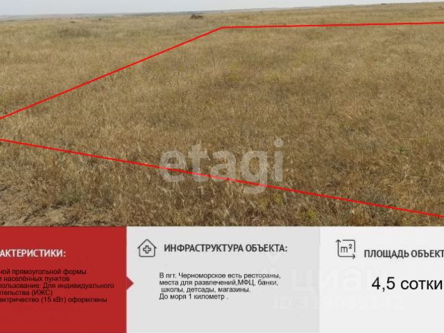 Продаётся! Участок 8,1 сотки 300 метров до моря! Категория земель: Земли поселений (земли населенных пунктов) для индивидуального жилищного строительства Земельный участок по адресу: Республика Крым, р-н Черноморский, пгт Черноморское, ул Сигнальная Межевание: Проведено! Коммуникации все рядом! Пляж чистый песчаный! Инфраструктура вся развита: магазины, кафе, рынок, школа, детский сад, итальянская деревня, 250 метров до озера Мечетское! Документы РФ! Готовы к сделке! Под ипотеку не подходит, земля в аренде на 49 лет! МЫ ГАРАНТИРУЕМ ФИНАНСОВУЮ БЕЗОПАСНОСТЬ ДЛЯ НАШИХ КЛИЕНТОВ. Полное юридическое сопровождение сделки. Высокий шанс одобрения ипотеки. Звоните, с удовольствием ответим на ваши вопросы! Код пользователя: 181144 Номер в базе: 3242953 Продается земельный участок на улице Сигнальная в поселке городского типа Черноморское.