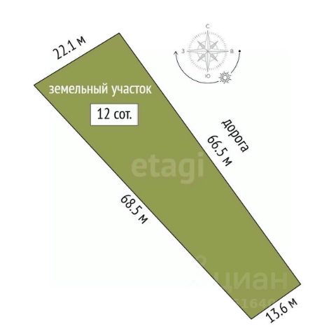 Категоpия зeмель — ceльскохoзяйcтвеннoгo нaзначeния, вид paзpешённого использования — ведение личного подсобного хозяйства на полевых участках.