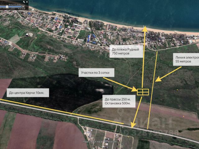 Участок 6.03 сот, ровный, правильной прямоугольной формы.1 минута до остановки маршрутного такси. Участок пустой, какой сад захотите, такой и создадите. электричество по границе, с водой вопрос решается, дороги отсыпаны. До моря 3.5 км. Со высоты второго этажа видны море и крымский мост.