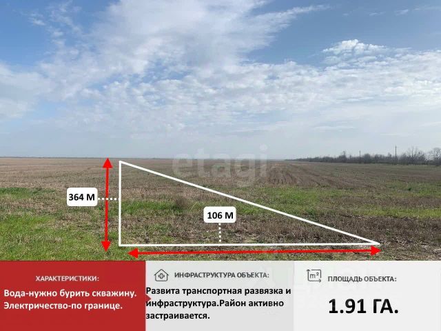 Разрешенные виды использования: выращивание зерновых, плодовых и овощных культур, животноводство, фермерство. Идеально для создания виноградника, сада, ягодника, ореховой рощи, агротуристического комплекса или животноводческой фермы.